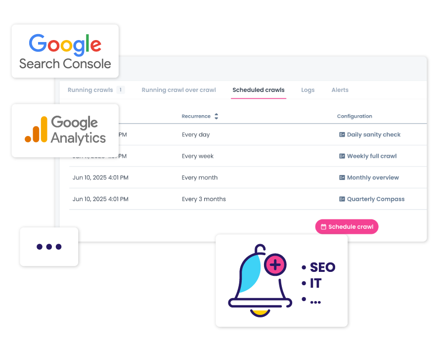Crawlez ce dont vous avez besoin, quand vous en avez besoin : Oncrawl est conçu pour gérer plusieurs projets, processus et flux de travail, vous laissant libre de vous concentrer sur d’autres tâches importantes.